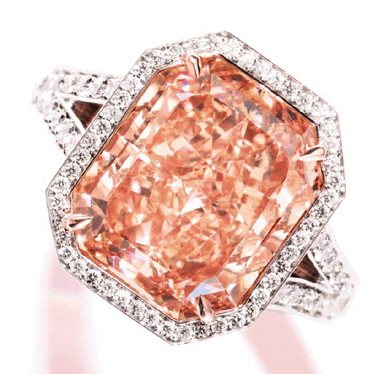 A radiant 7.67 fancy intense pinkish-orange diamond, internally flawless sold for $3,106,500, or $405,019 per carat. It is the largest flawless or internally flawless diamond of this pinkish-orange color graded by the GIA to date.