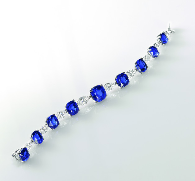 A 49.61 carat Kashmir sapphire and diamond bracelet, circa 1960, by Cartier, sold for $6,915,624. This item, according to Christie's, set a world auction record for a bracelet. The Kashmir sapphire bracelet, which sold for $6.9 million, had been sold by Christie's previously in 1988 for $902,000, which represents $1.7 million in today's currency.