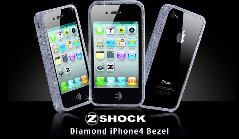 The new blinged out iPhone from ZShock takes opulence to a whole new level with its new diamond bezel. This will make your iphone different than everyone else. The diamond bezel has a precision fit that does not add bulk to the already small iPhone and allows for all the ports and buttons on the phone fully accessible. The iPhone Diamond Bezel is available in 14K, 18K solid gold or platinum and has over 22 carats of diamonds. The Diamond iPhone Bezel can also be ordered in various configurations, i.e. metals, and colored diamonds.