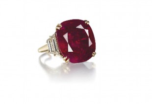 A 32.08 carat cushion Burmese ruby, also known at the Hope Ruby, sold for over US $6.7 million. The estimate was $3-5 million. Although not the most per carat, it set the top amount for any ruby ever sold at auction setting a new world record price. The ruby is top gem red but was said to be included.