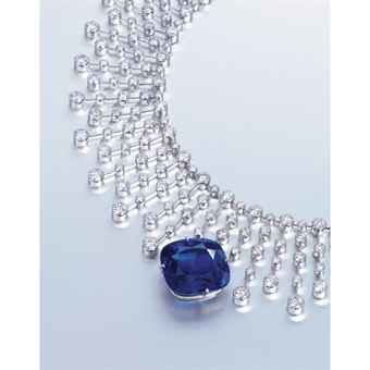 * 17.95 no heat Sri Lankan sapphire mounted in Cartier necklace sold for $625,000. The stone was graded by Gubelin. The gemstone was estimated at $560,000-$776,000.